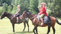 Dnes do naší vesničky zavítali přátelé ze Stašova se svými šesti bujnými oři a poníky. Objeli s námi kolo na naší velké stepi u teepee. Naučili jsme se naskakovat a seskakovat z koně.
