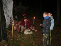 Odpoledne, když jsme si chtěli začít vyrábět své totemové zvíře, Manitou na nás seslal přeháňky.Večer jsme hráli mezikmenové soutěže a kvízy. Jedním z úkolů bylo poznat podle obrázků pohádku, nakreslit zadaná slova a z nich uhodnout písničku,skládat přísloví a poslat tichou poštou zprávu: "Když zjistíš, že jedeš na mrtvém koni, sesedni". Místo zaslouženého spánku nás čekala noční návštěva bláznivého šamana, kterému jsme mohli položit jen jednu otázku, na kterou jsme dostali odpověď. Cesta byla značená svíčkami, mohli jsme si vzít s sebou své totemové zvíře, které nás mělo ochránit, a v průběhu trasy jsme objevovali další zvířátka, která jsme na konci vyjmenovali.